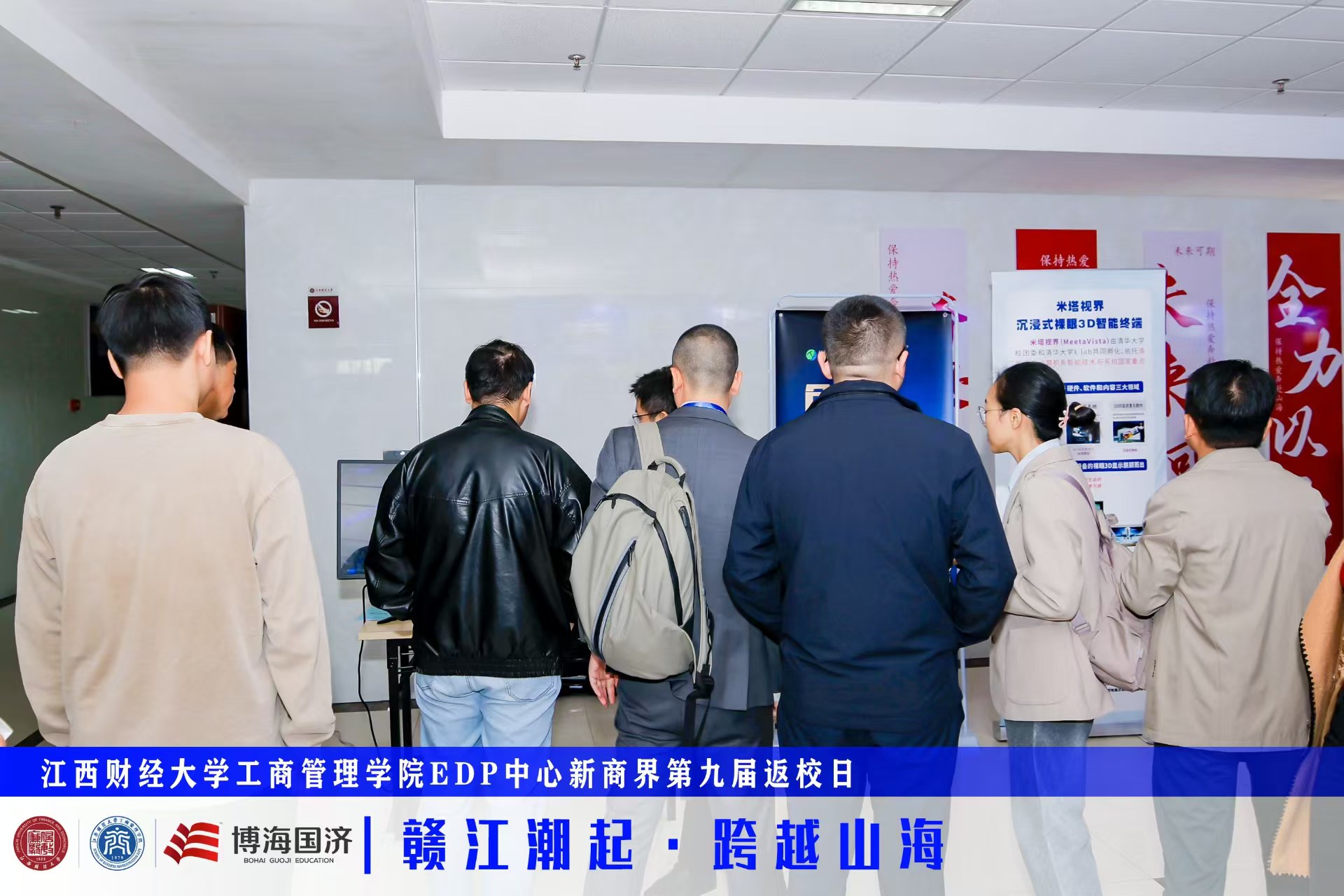2024年10月25日,江西財經大學工商管理學院EDP中心新商界第九屆返校日活動在學院大樓隆重舉行。此次活動吸引了眾多商界校友返校交流,共襄盛舉。作為受邀參展的企業之一,江西拓荒者科技有限公司在活動大廳的祼眼3D文物保護平臺展示成為現場的一大亮點,吸引了大量校友駐足咨詢與了解。