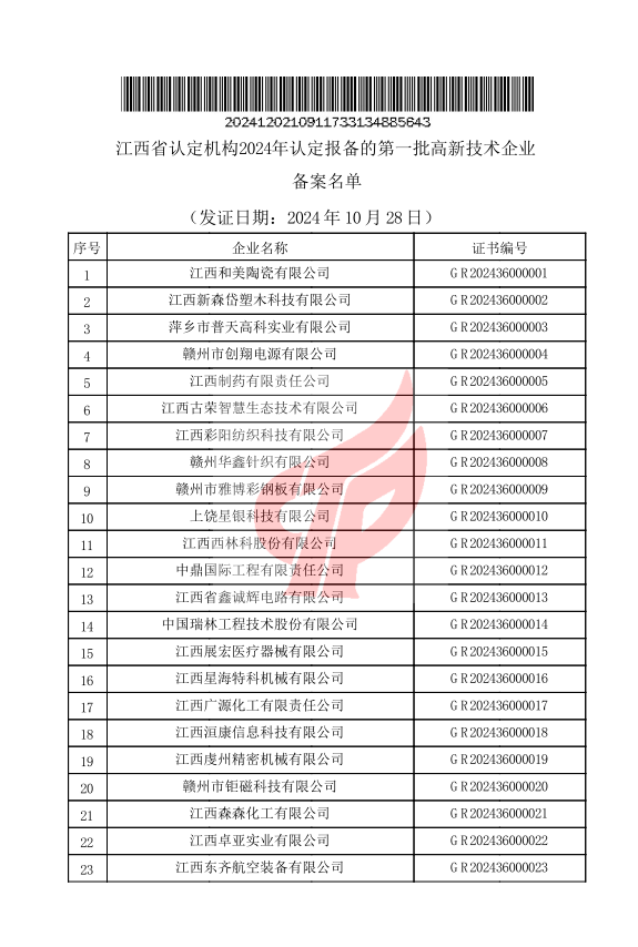 近日,高新技術(shù)企業(yè)認(rèn)定管理工作網(wǎng)正式公布了2024年江西省第一批認(rèn)定報(bào)備的高新技術(shù)企業(yè)名單。經(jīng)過(guò)相關(guān)部門的嚴(yán)格評(píng)審與綜合考量,江西拓荒者憑借其在科技創(chuàng)新、產(chǎn)品研發(fā)及企業(yè)綜合發(fā)展等方面的卓越表現(xiàn),再次榮獲“國(guó)家高新技術(shù)企業(yè)”稱號(hào),這是對(duì)公司持續(xù)創(chuàng)新能力的高度認(rèn)可。