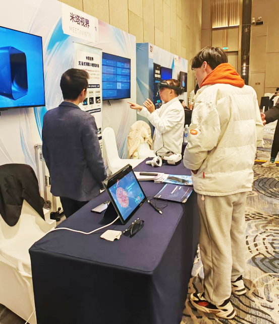 大會現場氣氛熱烈,線上線下交流不斷。我司作為虛擬現實(VR)領域的知名企業,也應邀參加了此次盛會。在主會場外,我司精心展出的虛擬現實(VR)產品應用成為了大會的一大亮點。其中桌面VR一體機體驗區吸引了大量觀眾駐足體驗,他們通過佩戴我司的3D眼鏡,身臨其境地感受到了虛擬現實技術的魅力。此外,我司與米塔視界合作推出的裸眼3D屏更是引發了觀眾的強烈興趣,無需任何輔助設備,觀眾就能直觀地看到三維立體的圖像,這一創新技術讓在場的每個人都贊嘆不已。