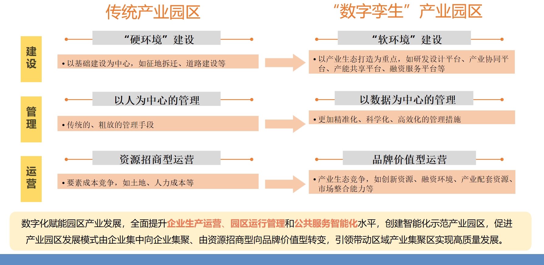 數字孿生園區通過數字孿生技術實現了現實世界與數字世界的融合,成為智慧城市建設的重要載體。在規劃數字孿生園區時,需要依照城市空間發展的邏輯和規律,確立其他相關因素的挑戰和機遇,并據此制定策略,選好園區開發的規模和范圍,制定數字孿生園區建設的目標和規劃框架。首先,要發掘園區的內外部資源及其優勢,為園區的定位和功能選擇打下基礎;其次,要關注環境問題,確定園區功能和配備合理的設施設備來提高園區工作的效率和品質,促進經濟增長;最后,應在規劃數字孿生園區時考慮到可持續性發展問題,盡量減少人為干預,保護環境部分開發資源,降低能源消耗,以求達到環保目的。