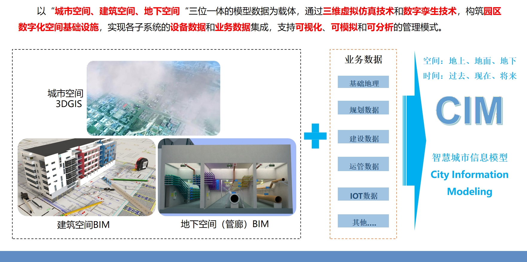 以信息化技術促進園區高質量發展為牽引,以數字化服務為重點,解決園區規劃建設的實際需求和突出難題。構建園區范圍內地上地下、室內外一體化的全空間三維信息模型,集成融合多源異構的園區運行全要素數據,依托三維模型數據、BIM模型、CIM模型、云資源和云計算能力,加強規劃方案比選、規劃成果特效主題應用、仿真模擬、場景展示和可視化,實現全要素數據的二三維深度融合及各類時空信息數據的互聯互通與共建共享,加快形成“全場景便捷參與、全流程科技賦能、全區域泛在互聯、全主體共建共享”的運行模式。